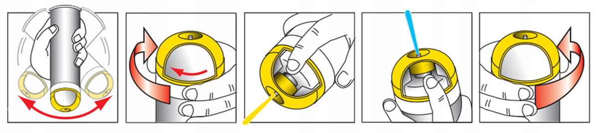 - Nyissuk ki a biztonsági kupakot az óramutató járásával ellentétes irányba.