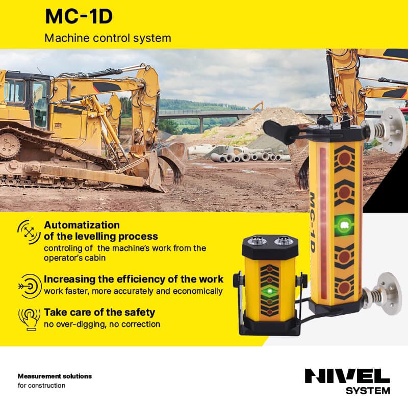 A Nivel MC-1D szintező rendszer lehetővé teszi a szintezést a munkagépet vezető számára, külön segítség nélkül. A jelfogó használatával a gépkezelő folyamatosan tudja követni a kanál/lapát magasságának a helyzetét a referencia magassághoz képest (- forgólézer lézersíkja), ezzel a munkavégzés még hatékonyabb, pontosabb és nem igényel külön embert.